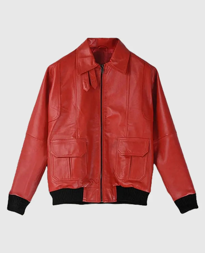 Men's Red Bomber Leather Jacket
